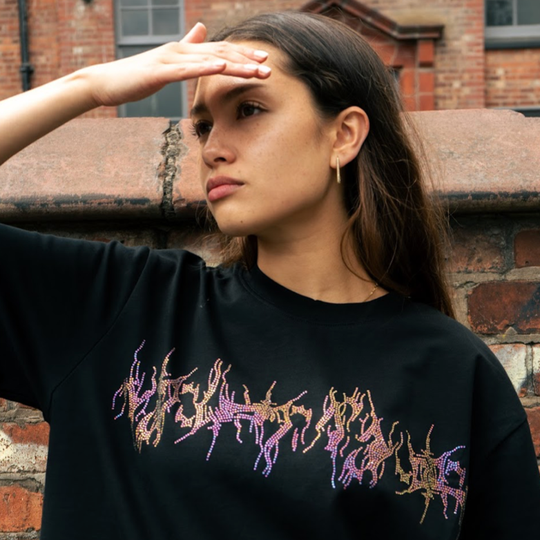 VYBES Rhinestone Lightning Tee