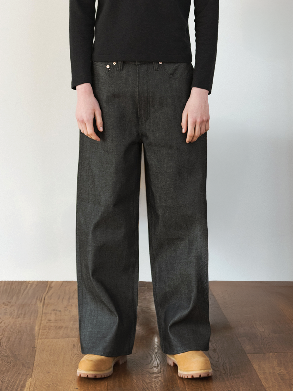 Japanese Selvedge Baggy Jeans – Black/Black