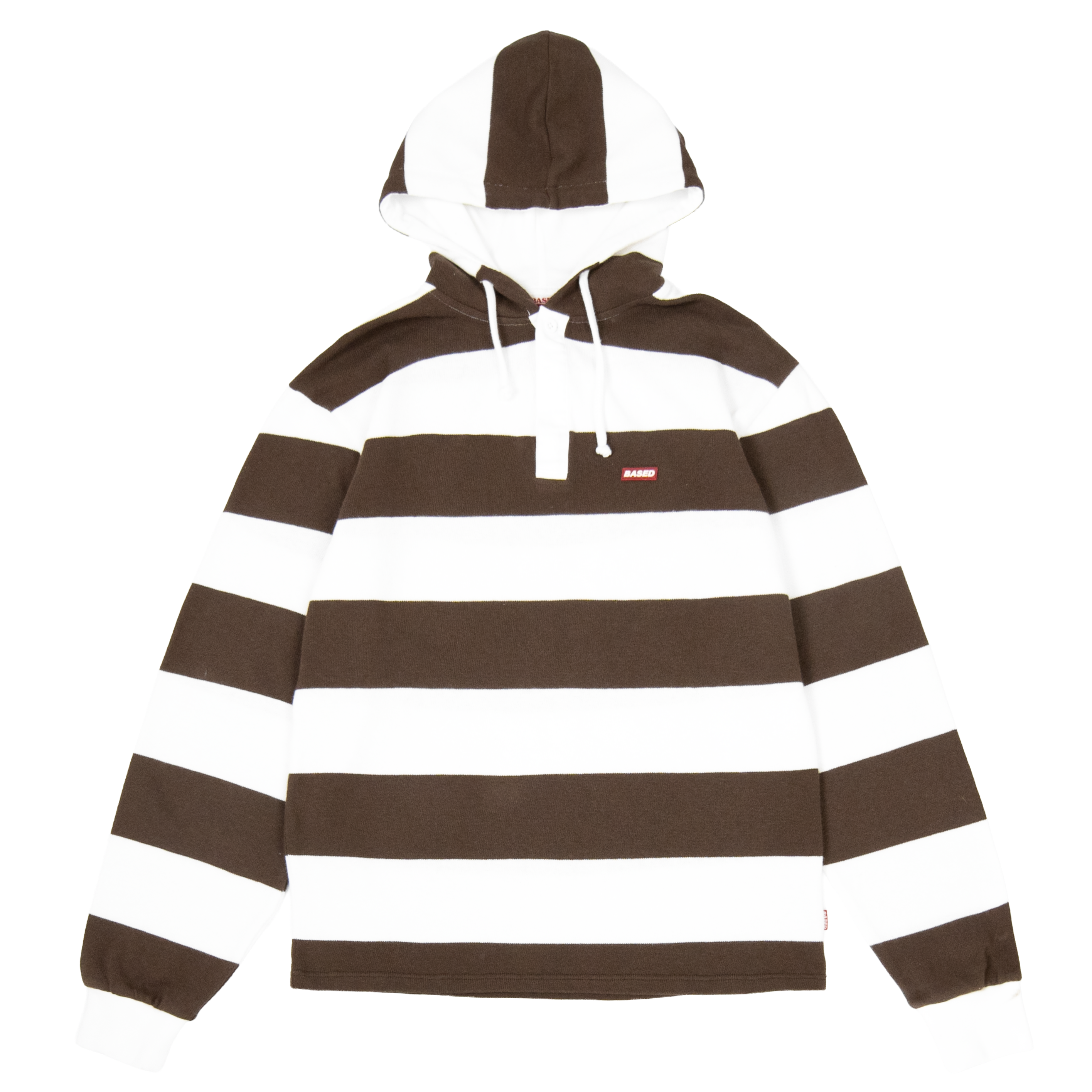 Striped Hooded Rugby Polo Knit [Brown/White]