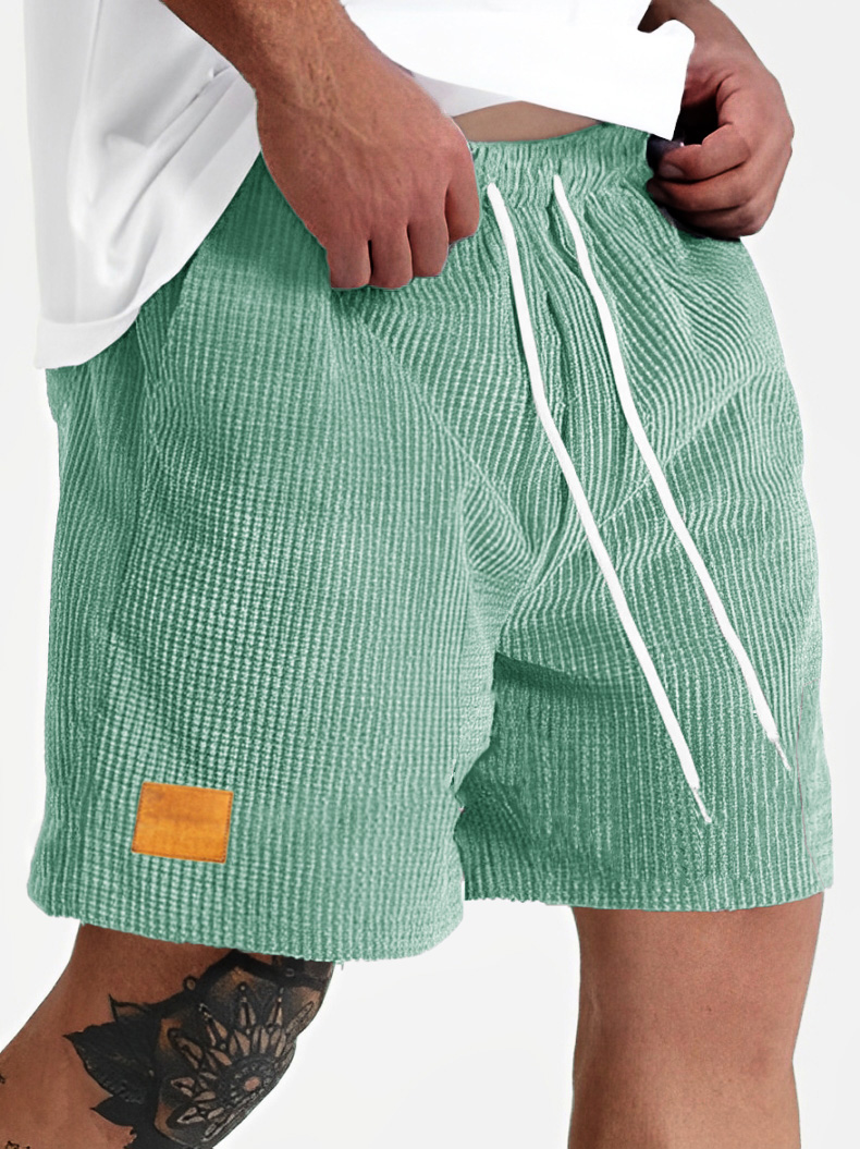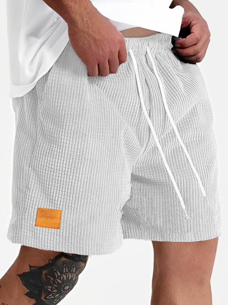 Men's Fashion Sports Lace-up Waffle Fabric Embroidered Logo Shorts