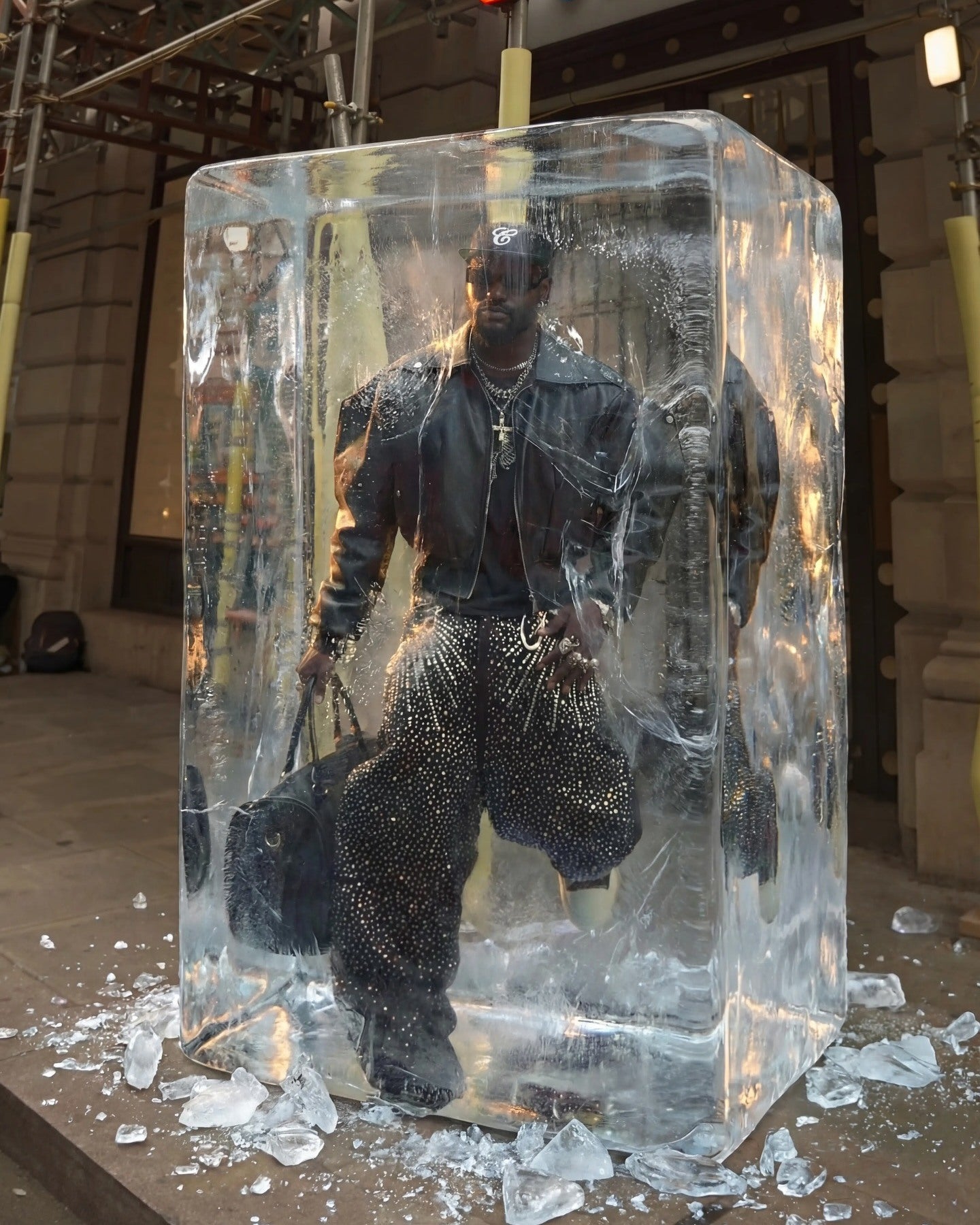 Retro Denim Full Rhinestone Design Baggy Jeans - 2545