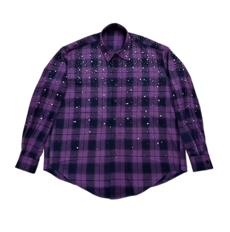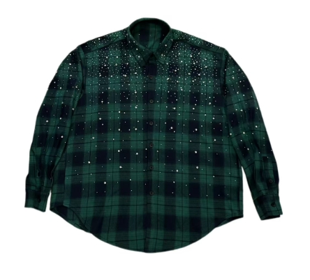 VYBES Rhinestone Plaid Long Sleeve Shirt Jacket